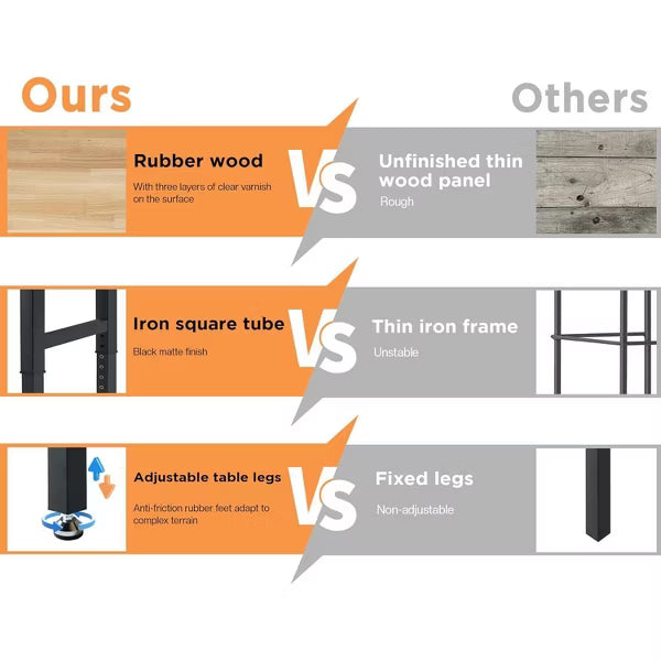 This heavy-duty workbench combines strength, versatility, and convenience for all your projects. Built with a solid rubberwood top and reinforced steel frame, it includes extra legs for enhanced stability. The height is easily adjustable to ensure ergonomic comfort, whether you’re sitting or standing. Integrated power outlets and tool hooks keep your workspace efficient and organized. With clear instructions and simplified assembly, setup is fast and solo-friendly. Ideal for garages, workshops, studios, or home use—this bench is made for makers, pros, and DIYers alike.