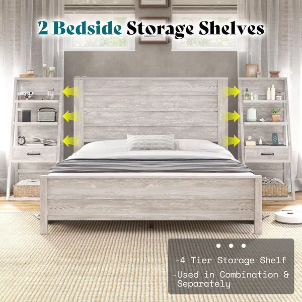 【Practical Bookcase Storage Headboard】4-tier storage shelves on each side of the headboard, equivalent to two nightstands. Large storage space keeps glasses, books, coffee mugs and other daily necessities within reach, keeping your bedroom tidy