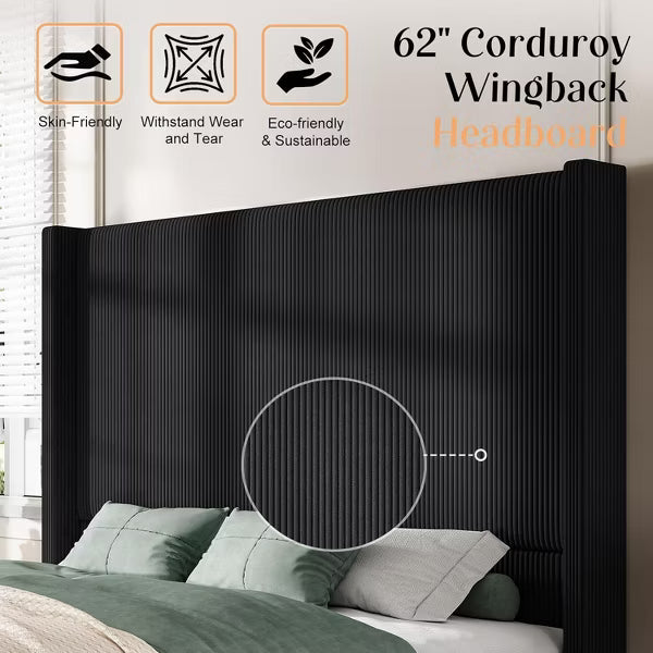 AMERLIFE Size 62" Corduroy Upholstered Bed Frame Extra Tall Wingback Headboard