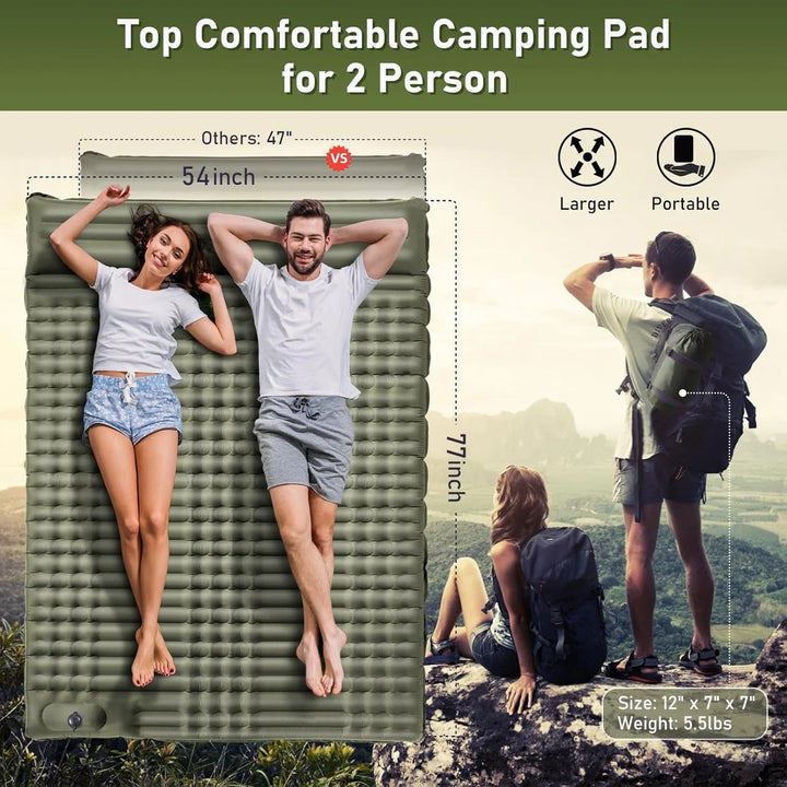Aship Sleeping Pad for Camping 2 person, 4.7 Extra-Thick Camping Pad with Pillow Built-in Foot Pump Inflatable Sleeping Pad for Backpacking, Hiking, Traveling, Tent Green