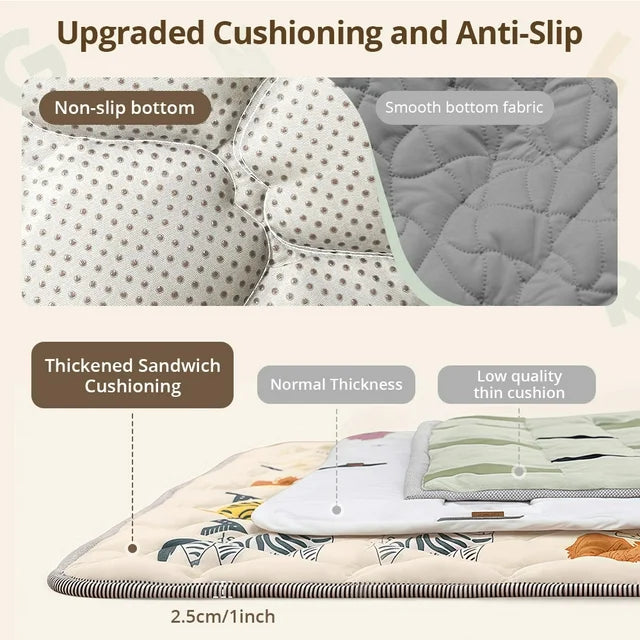 Superior Thicker & SoftOur baby play mat is filled with 430g of cotton and 25D sponge, 30% thicker than most other baby playmats, ensure a soft and cushioned surface, providing a comfortable place for your little one to relax, play and work on their developing skills.