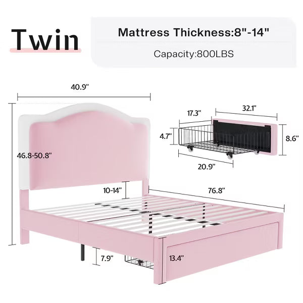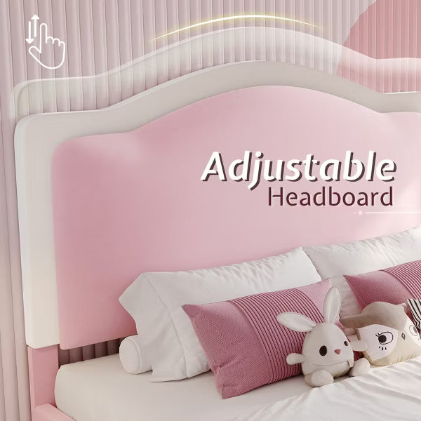 Girls Bed: This bed frame features cute unique shape and soft velvet upholstered headboard, built-in RGB LED lights bring more ambiance to your night.