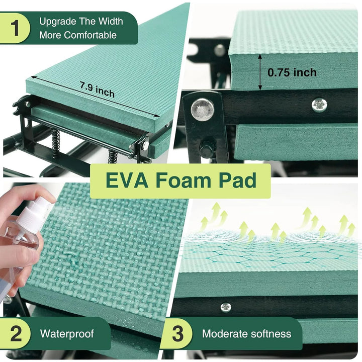 The garden kneeling stool is made of a strong metal frame and thick foam cushions, which can add stability and comfort to your body. It is durable enough to support 330lbs.