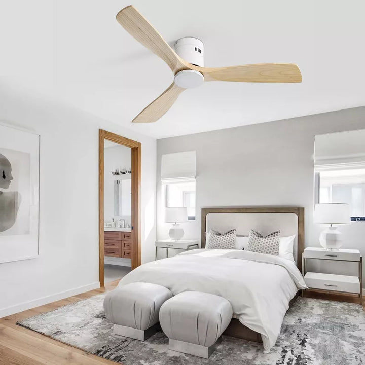 BestParts ProSeries 52" Ceiling Fan: Timeless Comfort, Modern IntelligenceEngineered for VersatilityCrafted for discerning homeowners, this 52-inch fan combines farmhouse aesthetics and advanced DC motor technology to cool living rooms, kitchens, covered patios, or bedrooms. The reversible airflow ensures year-round comfort—silently circulate cool air in summer or redistribute warmth in winter.Key FeaturesPro-Grade Build: Solid wood blades resist warping; matte white finish hides dust and fingerprints.Energy Savings: 110V DC motor (18W) uses 65% less energy than traditional AC fans.