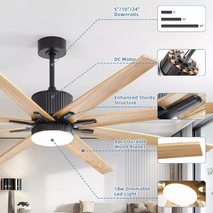 BestParts ProSeries 76" Smart Ceiling Fan: Intelligent Comfort, Timeless StyleEngineered for Modern LivingThis 76-inch fan combines Alexa/Google smart controls, reversible DC motor, and dimmable LED lighting to elevate comfort in large indoor/outdoor spaces. The solid wood blades and black & wood finish add rustic-modern flair, while the 6-speed motor ensures whisper-quiet performance (≤35dB).Key Features✔️ All-Season Versatility: Reverse blade direction via remote—cool summer days or circulate warm air during winter.