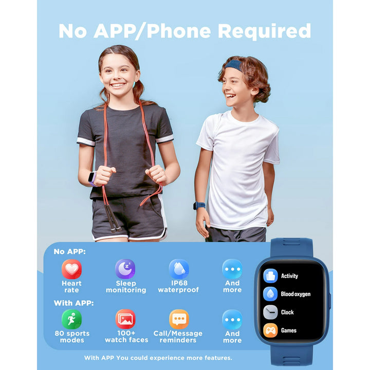 2. Without/With APP: BIGGERFIVE kids fitness tracker watch can be used seperately without APP and phone.