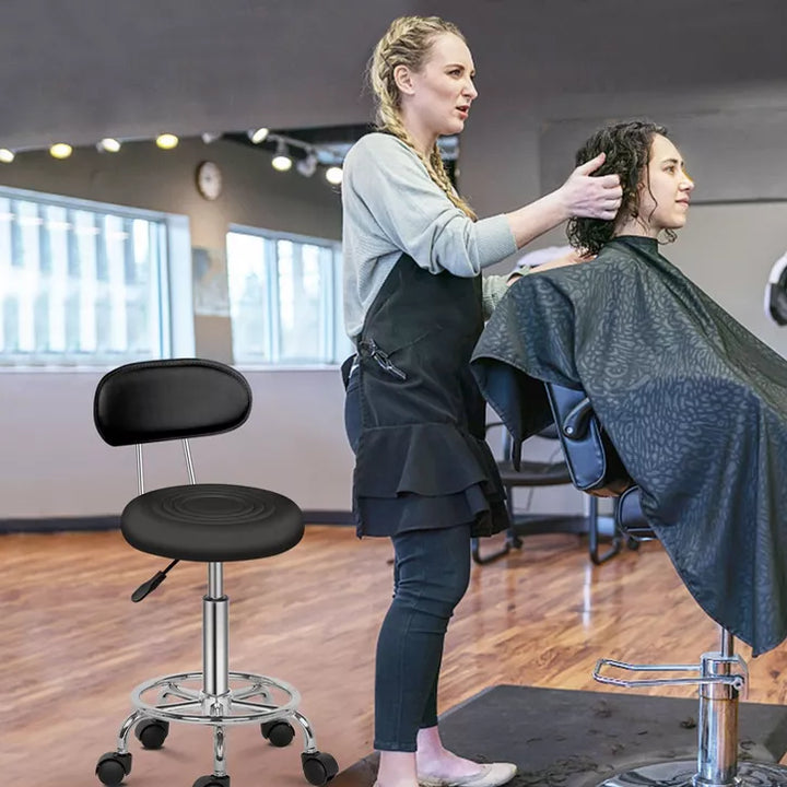 Black Swivel Salon Stool Chair with Backrest, Height Adjustable Rolling Bar Stool