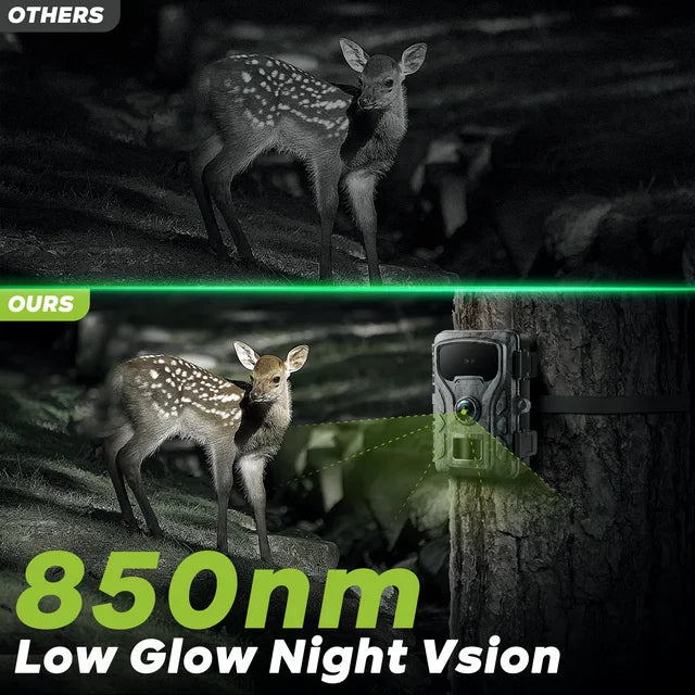This trail camera is made with high-grade IP66 materials, ensuring durability from the seal to the probe lens. This feature enables it to operate effectively in demanding environments, such as tropical rainforests or deserts