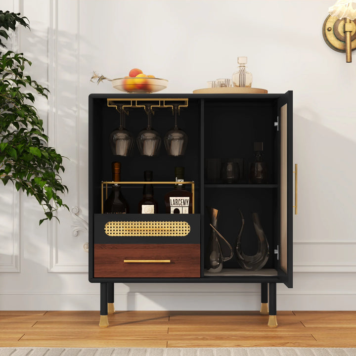 - Customizable Storage System: Features 3-tier stemware racks, pull-out wine drawer (8-bottle capacity), and 2 adjustable shelves. Bottom drawers (16.73"L x 11.81" W) organize bar tools/mixers.