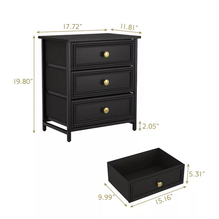 CIPACHO 2 Piece Black 20 Tall 3 Drawer Nightstand Set Ideal for Living Room to Organize Small Essentials and Brighten Your Space