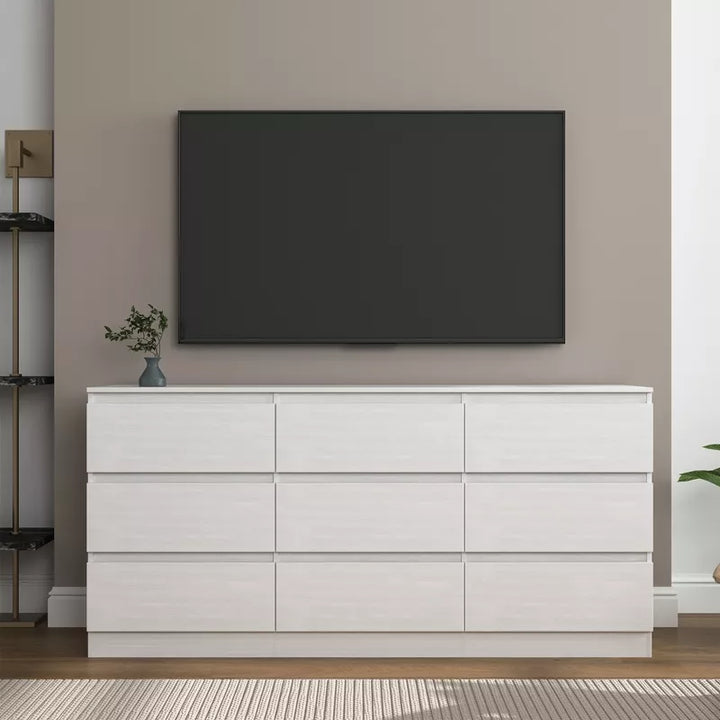 CIPACHO Mid Century Modern 9 Drawer Dresser in White with Hidden Handle Perfect for Bedroom to Boost Storage and Elevate Retro Home Vibe