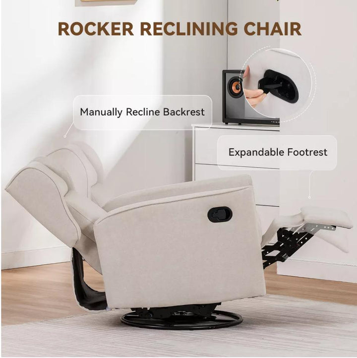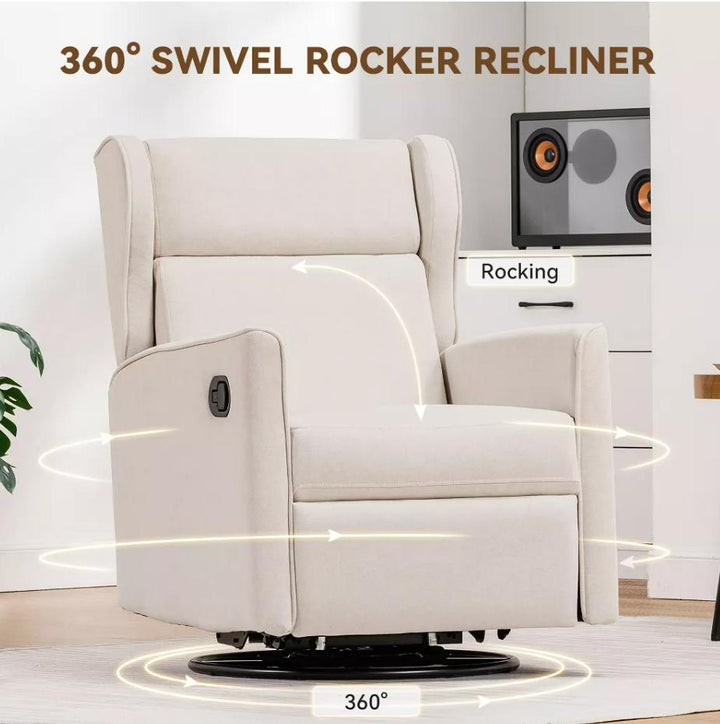 【Easy to Assemble】The rocker recliner chair only takes 10 minutes for one person to assemble. According to the instructions provided, it only takes a few steps to install the backrest and the widened two-wing backrest. Our swivel recliner is a great choice for relaxing at home.