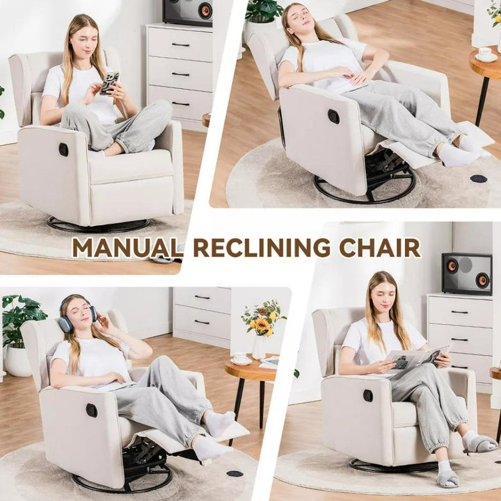 【Swivel Recliner Chair】Our rocking recliner chair has a sturdy metal base that can easily support 360-degree rotation and mobility. Whether you are video calling with friends, watching TV or just working, you can turn to any direction effortlessly, it can provide you with freedom and convenience.