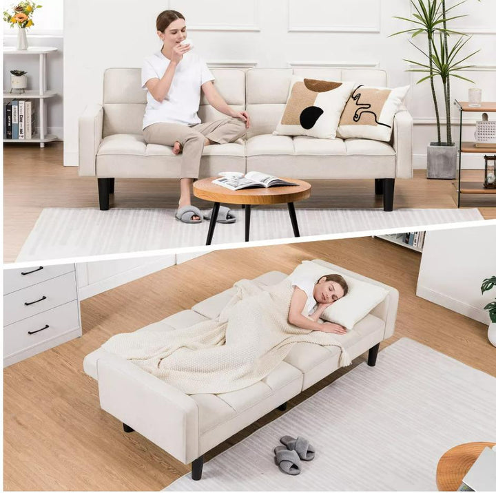 COMHOMA Convertible Futon Sofa Bed, Loveseat with Armrests, Sleeper, Futon Couch