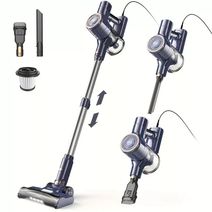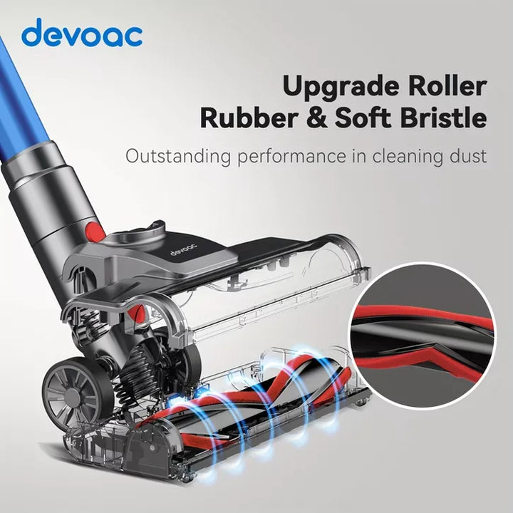 DEVOAC I8 Corded Stick Vacuum Cleaner, unleash astonishing cleaning power without breaking the bank The ultimate entry-level solution for families who value reliability and performance. This low-cost vacuum cleaner is powered by a robust 600W motor that generates an incredible 23KPA of powerful suction, effortlessly lifting stubborn pet hair, cat litter, and daily debris from any surface. Never miss a speck of dust with the maneuverable motorized floor head, equipped with brilliant LED headlights to illuminate dark corners and a 180° swivel to navigate tight spaces on both hard floors and low-pile carpets. Breathe confidently knowing the advanced 5-stage high-efficiency filtration system captures 99.99% of microscopic particles, preventing secondary pollution and delivering cleaner, healthier air to your home. Embrace the convenience of uninterrupted corded power for a consistent, fade-free, and surprisingly deep clean every time, making the DEVOAC I8 the perfect, budget-friendly partner for all your household cleaning needs.