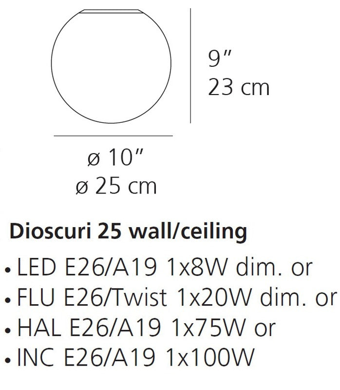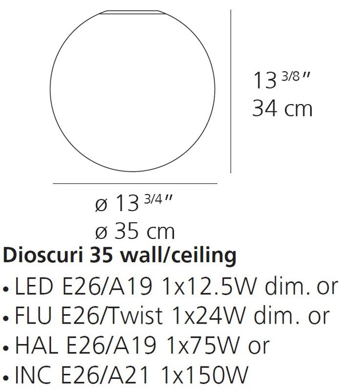 Chic and radiant, the Dioscuri Wall/Ceiling Light by Artemide is a versatile luminary that can be installed as needed in any space you desire. Crafted from Italian hand-blown glass, this refined lighting design brings a serene ambiance to any indoor or outdoor space. Various sizes allows you to create your own dynamic lighting arrangement— whether accenting a bathroom or brightening a hallway.