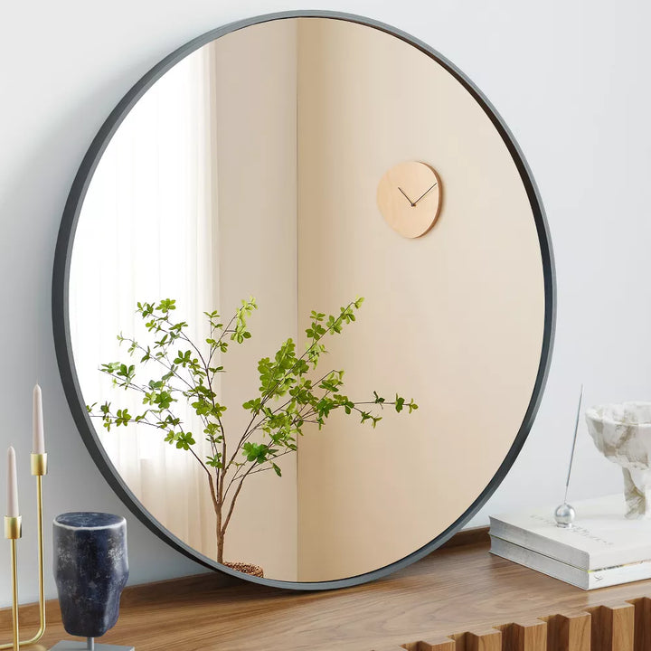 The DOMETOUR Round Wall Mirror is a versatile and stylish addition to any space. Designed for use over sinks, in bathrooms, entryways, bedrooms, or as a vanity mirror, this circular mirror combines functionality with elegance. Its minimalist frame complements various d¨¦cor styles, from modern to classic. Crafted with precision, the high-quality glass provides crystal-clear reflections, perfect for your daily routine or enhancing natural light. The sturdy construction ensures durability, while the easy installation makes it a hassle-free upgrade for any room. Whether you're refreshing your bathroom or creating an inviting entryway, this round wall mirror is a practical and chic choice for enhancing your home's aesthetic appeal.