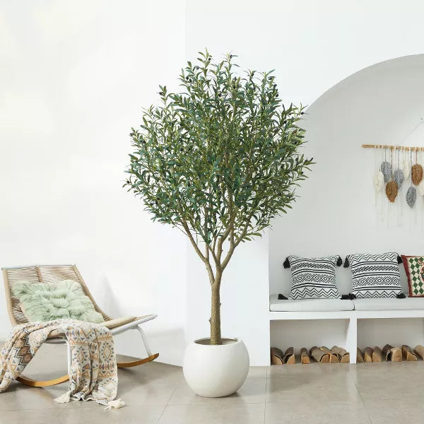 Turn cramped corners into Mediterranean thickets with Dr.Planzen's olive tree - where artificial plants engineering creates lush, jungle-worthy density real trees can't match. Our faux olive tree explodes with 300+ silk leaves cascading like green waterfalls, each UV-armored to resist sunroom fading better than SPF 100. From cozy 5-foot versions perfect behind reading nooks to majestic 8-foot floor plant statements that dominate loft spaces, this tall plant brings Tuscan orchard energy to any setting. The secret? Botanical-grade branching that mimics century-old grove growth patterns, anchored in a 7x8" weighted planter (sleek black finish) we tested against 40mph balcony winds. Unlike sparse fake trees, our indoor plants feature triple-layer foliage that creates Instagram-worthy depth - style beside mid-century consoles as living art, or use twin artificial trees to frame fireplace mantels with Mediterranean drama. Hosts love how these house plants photograph like Sicilian postcards, while urban dwellers adore faux plants that thrive in windowless studios. Fake plants become living sculptures here: Watch guests stroke leaves expecting olive oil residue, then gasp when they learn it's UV-resistant magic. Dr.Planzen's olive tree fake plants deliver Old World abundance without the watering cans or leaf-raking - Mediterranean luxury that grows more valuable with time.