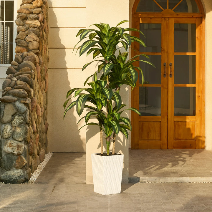Elevate your space with the 6-foot DR.Planzen Artificial Dracaena Tree — a lifelike home decor solution that adds tropical elegance to any room. Featuring UV-resistant silk leaves, this faux tree retains rich color whether used as an outdoor plant on patios or as office decor in low-light areas. The 15.7-inch planter with a weighted base (21.34 lbs) provides secure stability for this tall plant. Designed for hassle-free maintenance, its naturally arranged foliage requires no watering or upkeep — simply enjoy year-round vibrancy that complements real indoor plants. Ideal for upgrading living rooms, lobbies, or sunrooms with timeless style.