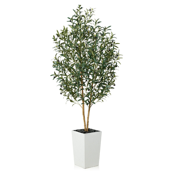 DR.Planzen 6FT Tall Artificial Olive Tree with Tall White Planter, UV Resistant Silk Leaves Real Wood Trunk | Home Office House Outdoor Decor