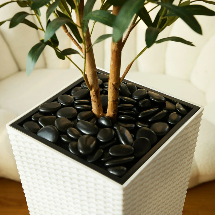 - Natural Wood Trunk Design delivers authentic texture with stabilized branching structure. The realistic trunk surface mimics aged olive trees, adding rustic charm to contemporary spaces.