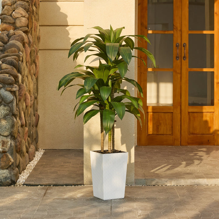 This faux Dracaena tree is more than just a fake plant; it’s a piece of tranquility, offering all the beauty of nature without the hassle of maintenance. Whether indoors or outdoors, it’s the perfect addition to any home or garden. Let this timeless Dracaena plant breathe life into your decor — effortlessly.