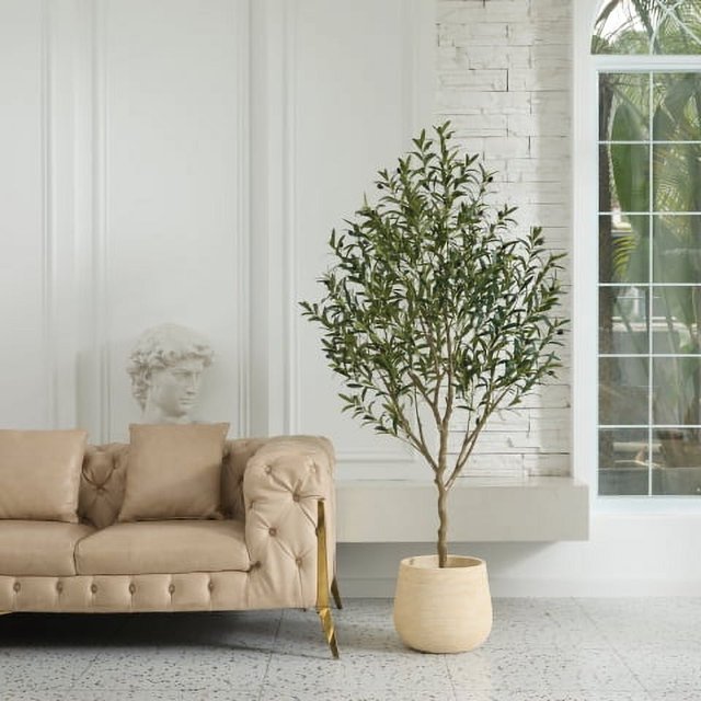 If you are a fan of nature and want to bring a tropical atmosphere into your home, but lack the time and experience to care for a real tree, then you don't want to miss this beautiful artificial olive tree. DR.Planzen is a company that specializes in the production of artificial plants and trees. We are dedicated to designing and manufacturing fake trees with the best quality and design. Making your life more enjoyable and bringing greenery to your home is our ultimate goal! This item comes in a black planter pot as it is meant to be repotted or put in another container as shown in the photos on website. Item may need to be re-shaped when removed from box to achieve its intended appearance. Assembles easily and you can bend the branches to get the look you want.