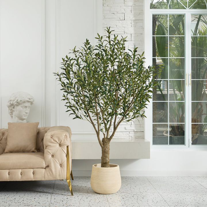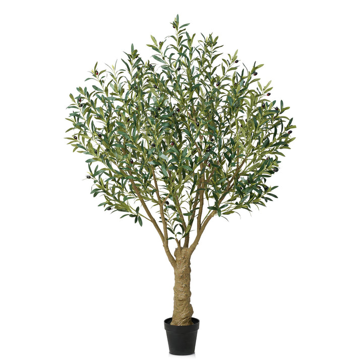DR.Planzen Artificial Olive Tree, 6FT Tall Silk Faux Olive Tree with Massive Trunk Base, UV Resistant Black Plastic Potted Plant for Home Office Decor
