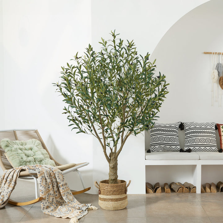 Elevate spaces with DR.Planzen's 6-Foot Artificial Olive Tree (25.52lbs). UV-resistant silk leaves replicate natural olive foliage, permanently vibrant in sunlight or shade. The weighted black pot (7"H) ensures tip-resistant stability for indoor/outdoor use, while realistic branching creates depth perfect for modern homes, offices, or patios. Hassle-free sophistication that stays lush without watering or leaf care.