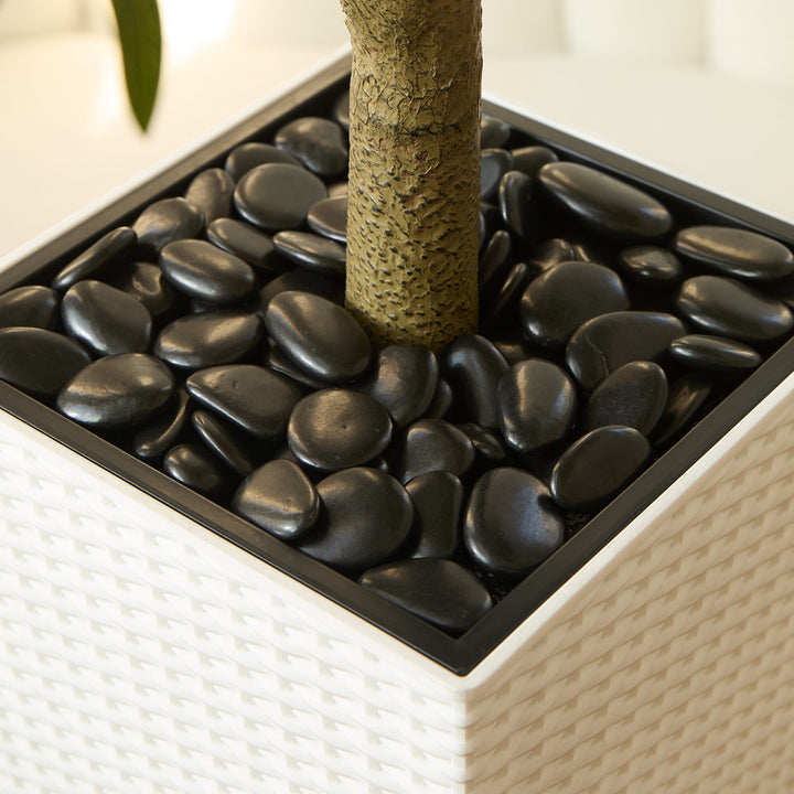 - Durable & Secure Base: The tree’s sturdy white plastic base (15.7 inches high, 10 inches wide) is topped with decorative pebbles to ensure stability and prevent tipping. It’s designed for both indoor and outdoor use, offering a reliable foundation in any environment.