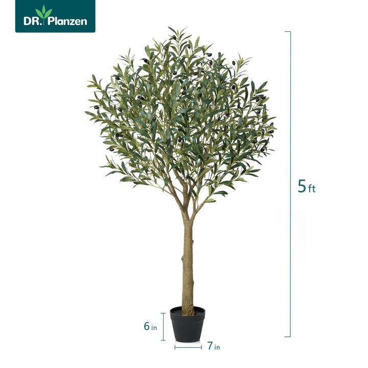 DR.Planzen UV Resistant Artificial Olive Tree 5ft - Faux Olive Plant for Indoor Outdoor Decor - Adjustable Branches - Realistic Olive Tree with Black Plastic Pot