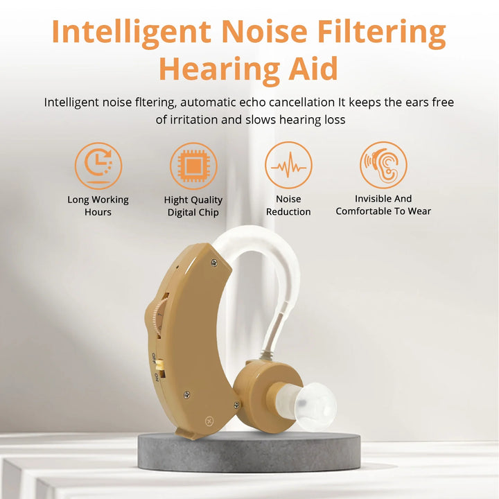 • Smart Noise-Reducing Hearing Aid‌:Cuts background noise to amplify voices and critical sounds.