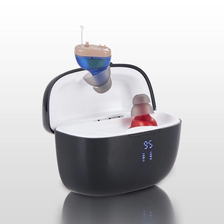 Drop your ELCTRTICI hearing aids into the sleek magnetic case between uses – they’ll snap into place automatically and charge to 100% in just 2 hours (quicker than baking cookies!).