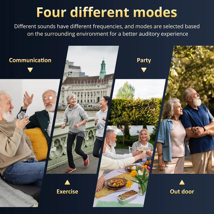 The hearing aids automatically reduce wind, traffic, and crowd noise by 70%, focusing on voices in front of you for enhanced social interactions.