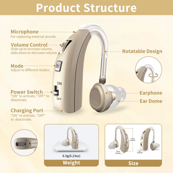 Equipped with a ‌16-channel DSP chip‌, this ‌Hearing Aid‌ processes sound in real-time to reduce feedback, wind noise, and sudden loud sounds. The tactile ‌Hearing Aid‌ volume wheel allows precise adjustments, perfect for workouts, travel, or daily errands.