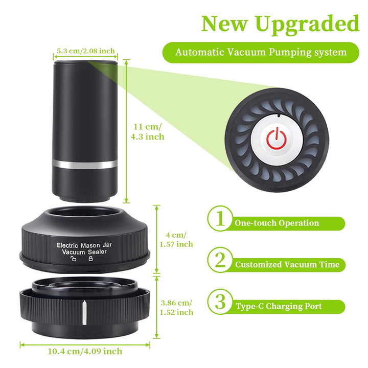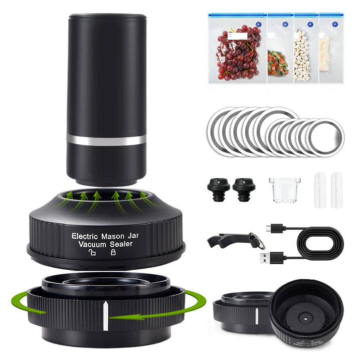 ELCTRTICI Vacuum Sealer, Mason Jar Vacuum Sealer Machine Kit, Upgraded Regular Mouth and Wide Mouth Mason Jar, Electric Vacuum Sealing Machine for Food Storage, Black.