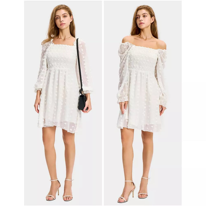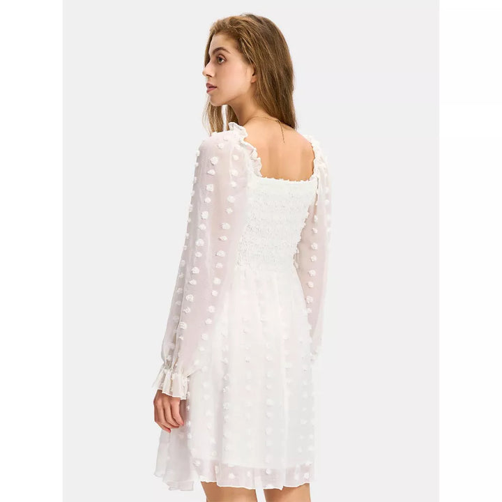 EXLURA Women's 2025 Summer Long Sleeve Party Swiss Dot Dress Smocked Ruffle Cocktail Mini Dresses