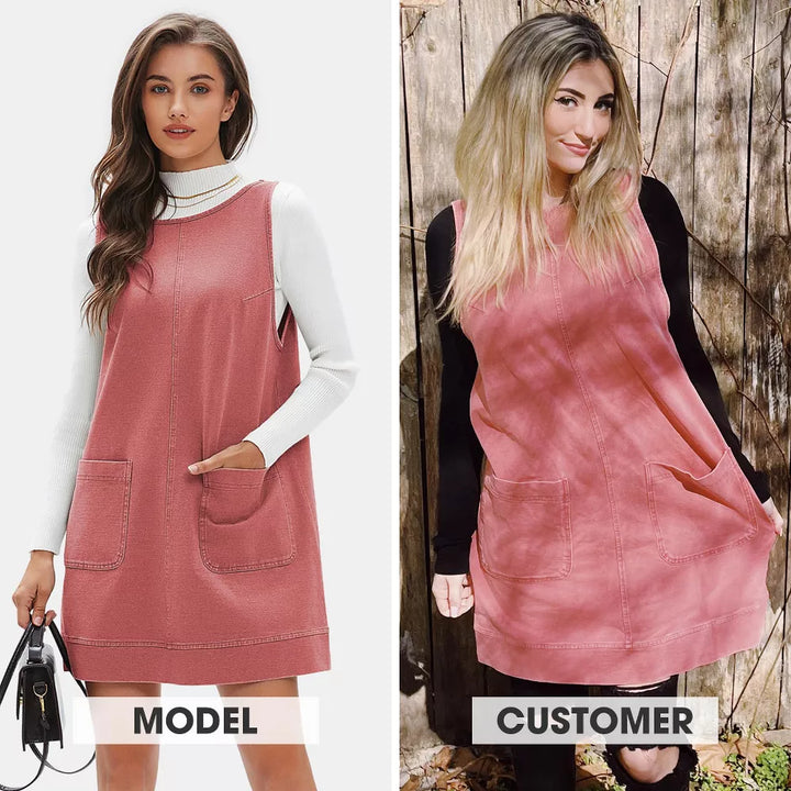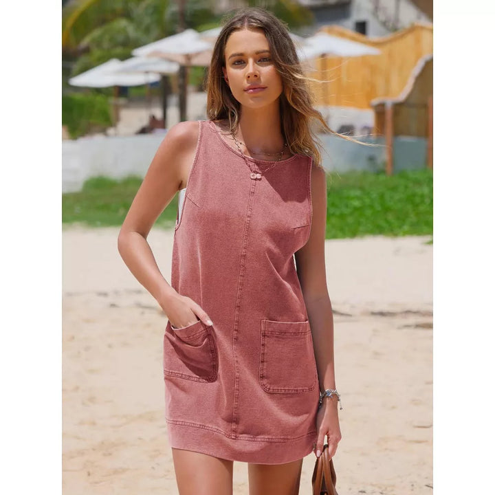 EXLURA Womens Sleeveless Denim Dress Casual Summer Crewneck A Line Overall Mini Dress with Pockets