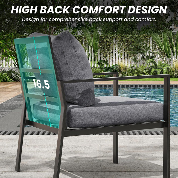 - 【Robust & Corrosion-Proof Structure】 Built around a robust metallic framework, this 4-piece outdoor seating arrangement guarantees enduring reliability. A specialized anti-rust finish shields it from environmental wear, ensuring sustained performance.