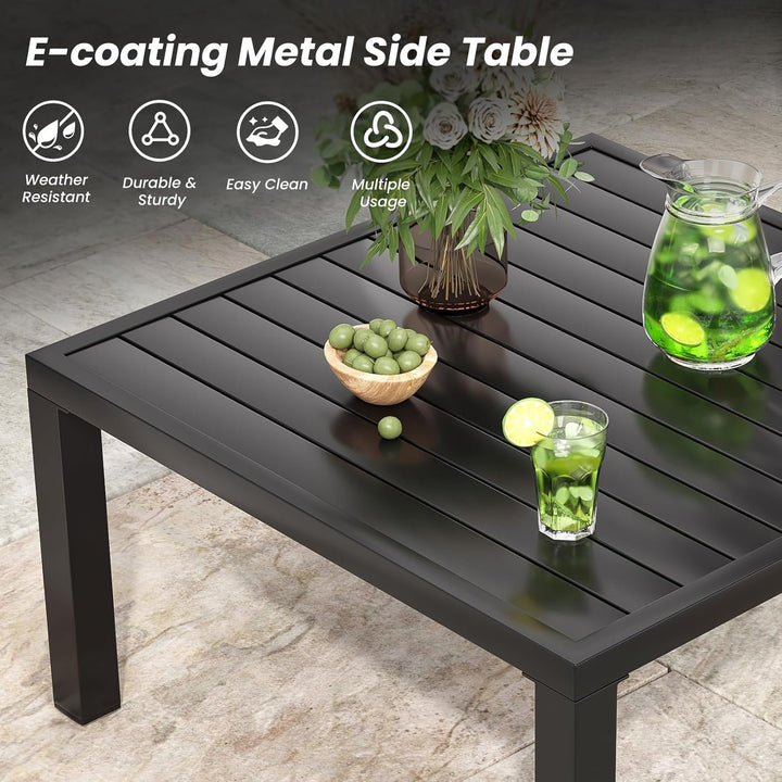 - 【Practical Centerpiece Table】 Accompanying this ensemble is a sturdy metallic coffee table, tailored for holding beverages, nibbles, or ornamental pieces. Its streamlined aesthetic harmonizes seamlessly with both outdoor and indoor decor.