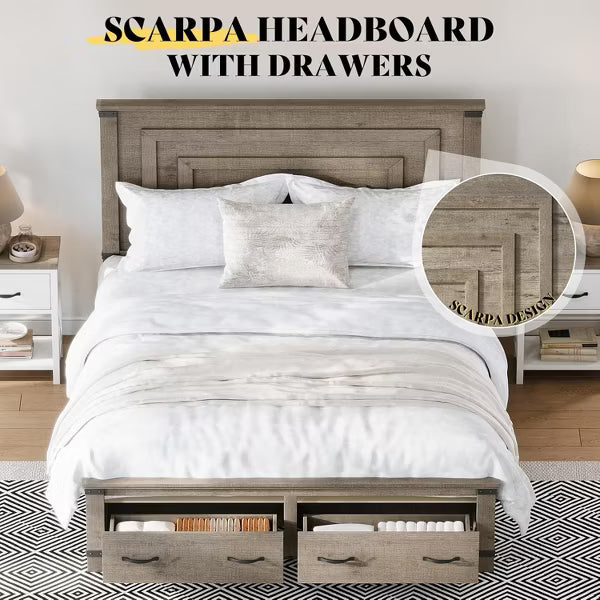 【Built-In Drawers for Everyday Storage】The bed frame features 2 spacious drawers offer convenient storage for bedding, clothes, and everyday items—keeping your bedroom neat and organized