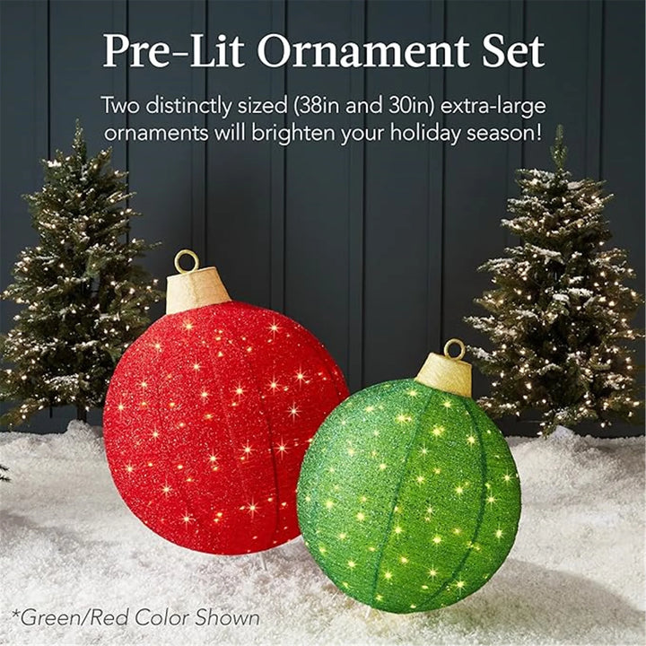 Bring the holiday spirit to your outdoor space with this 3pc lighted ornament set. These red, yellow, and green ornaments are pre-lit with warm white LEDs, casting a cozy glow that fills your yard, porch, or patio with festive charm. Built to endure winter weather, these weatherproof ornaments will shine bright through the season. They’re easy to assemble and store, making them the perfect hassle-free addition to your outdoor Christmas decor. Get ready to transform your space into a winter wonderland with these magical, cheerful ornaments!