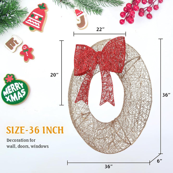 FOOWIN 48in Outdoor Christmas Wreath, 140 Lights Metal Christmas Decoration for Doors, Windows, Wall
