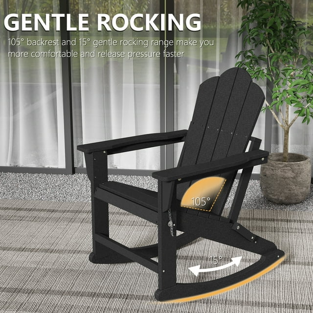 FOOWIN Folding Rocking Adirondack Chair Set of 2, HDPE Plastic Rocking Chairs for Patio Porch Rocker Chair, Black