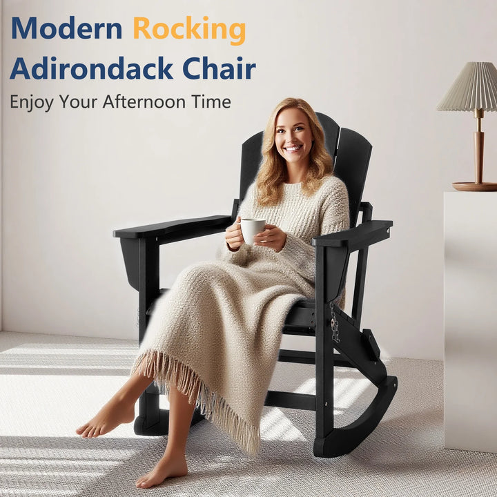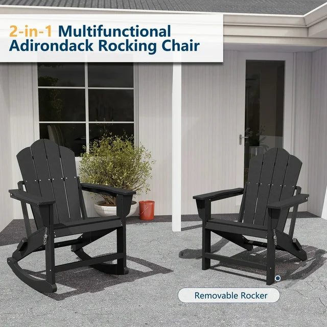 - 2-in-1 Adirondack Rocking Chair: FOOWIN adirondack chairs feature the latest innovative designs, It gives you the experience of having 2 different chairs at the same time, which is equivalent to having an Adirondack chair and a rocking chair at the same time.