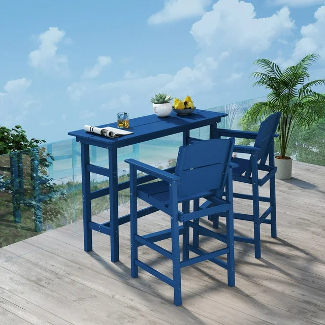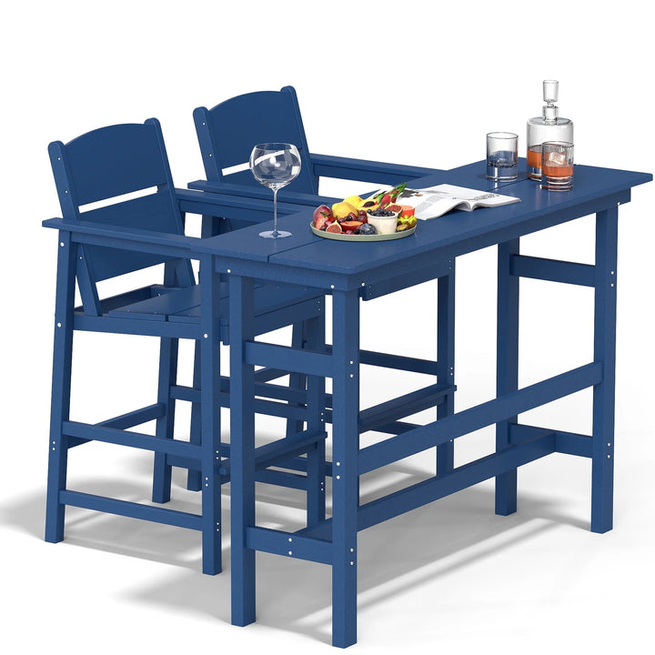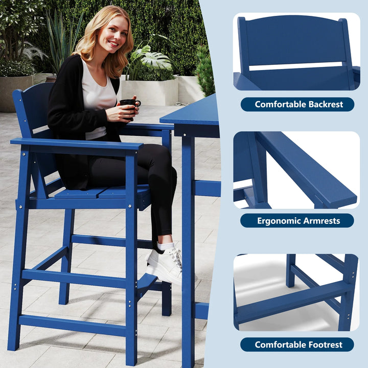 FOOWIN Outdoor Bar Table and Chairs Set, Adirondack Bar Chairs Set of 2 and Bar Height Table, All Weather HDPE Bar Height Patio Set, Navy Blue