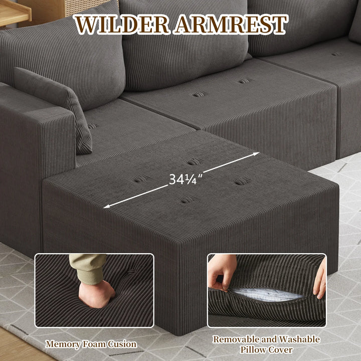 - Modern Sectional Sofas: Designed with versatility in mind, the sectional couches consist of 4 parts. Equipped with removable back cushions and neck pillows, you can transform the modular corduroy sofa as needed. Add flexibility and personalized style to your living space.