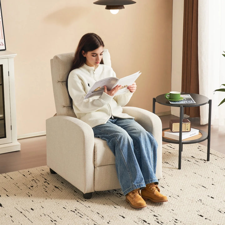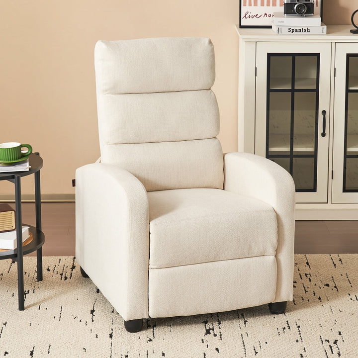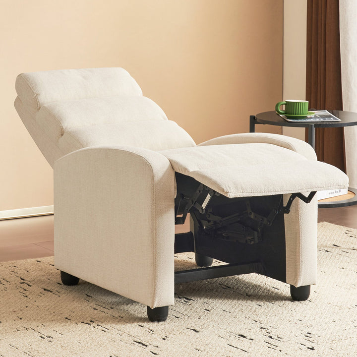 Furniliving Manual Recliner Chair, Upholstered Recliner Sofa with Footrest and Arms, Adjustable Modern Single Sofa with Padded Seat Backrest for Living Room, Beige