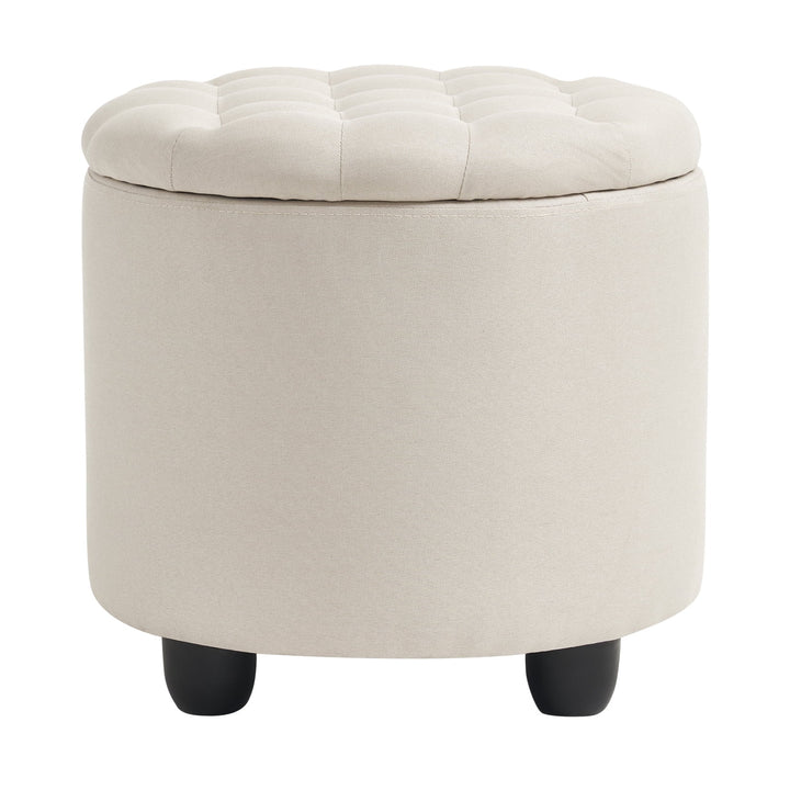 Furniliving Upholstered Round Storage Ottoman Large Tufted Ottoman with Removable Lid Footrest Stool for Living Room, Bedroom, Beige