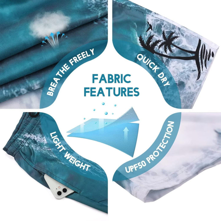 🍁【Material】:Our hawaiian men shorts are crafted from 100% polyester, ensuring a quick-dry and lightweight feel. These durable men swim trunks provide maximum comfort for all your summer adventures, keeping you cool throughout the day.